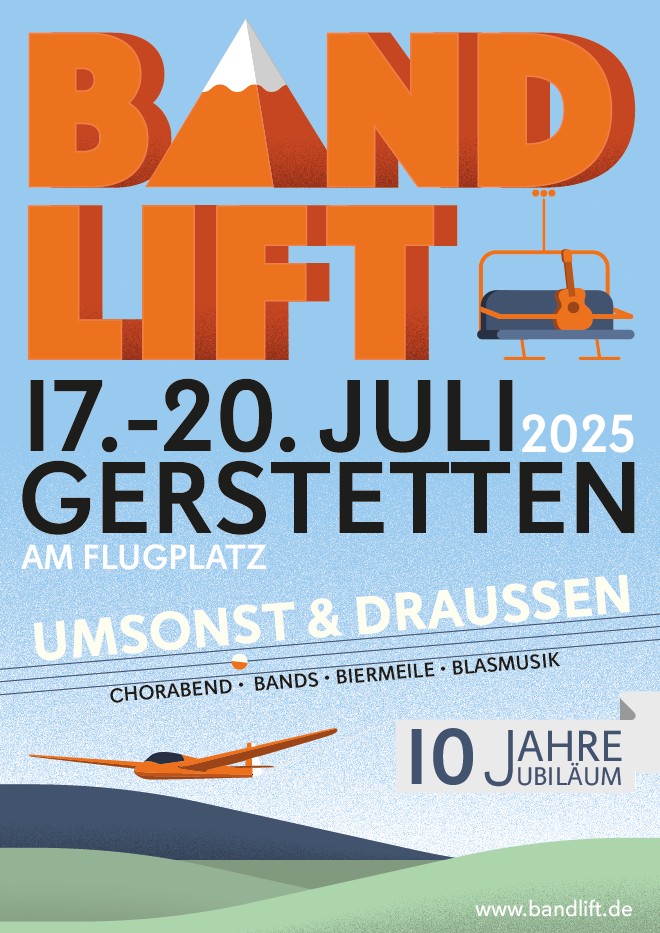 Das Bandlift fand nun schon zum zweiten Mal am Segelflugplatz statt und war wieder ein voller Erfolg! Außerdem gab es den ersten Bandlift-Jugendtag der Blasmusik. Nach dem Gottesdienst im Grünen traten am Sonntag Jugendkapellen und -orchester aus dem Landkreis auf und spielten sogar einige Stücke im Massenchor.